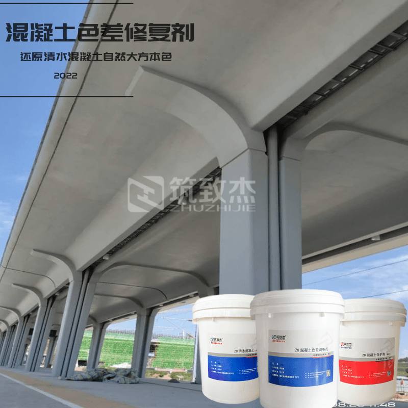 (1)下雨后顏色變深:清水混凝土在生活中到處可見,最常見的就是市政道路設施,如橋梁、路基、道路隔離墩等。給人印象最深的是這種形式的建筑物在下雨中和剛剛下雨后,表面濕濕的,有些表面甚至是很污濁的。這是因為混凝土屬于多孔物質,表面吸水率高,自潔性差,很容易吸收水份, 吸水后就會顏色變深、變臟;(2)混凝土的強度在經過幾十年后的變化:混凝土屬于堿性物質,只有保持混凝土的這種堿性,才能維持混凝土原有的強度和耐久性。而裸露的混凝土在自然界中會遭受雨水、紫外線、油污等的侵蝕,通常雨水為弱酸性,會使混凝土逐漸失去堿性,日趨中性化,長時間混凝土就會變得疏松、強度降低。從而縮短使用壽命。同時雨水會逐漸滲透至混凝土內部造成鋼筋銹蝕,表面銹跡斑斑,影響美觀。嚴重的鋼筋銹漲造成混凝土開裂、脫落,對車輛和行人形成安全隱患;(3) 混凝土表面缺陷及色差:混凝土澆筑是一個歷時較長的過程,模板的安裝多為人工手工作業,對工人的操作水平和責任心要求很高,另外,大部分工程工期較長,跨季節、跨年度施工,需用不同性能的外加劑保證混凝土的施工性,導致混凝土的顏色不可能一致。經常出現的問題有冷接縫、色差、麻面、蜂窩等缺陷,而這些缺陷的處理與否直接影響到混凝土的外觀效果。(2) 修補混凝土表面外觀,達到設計要求的美觀度。